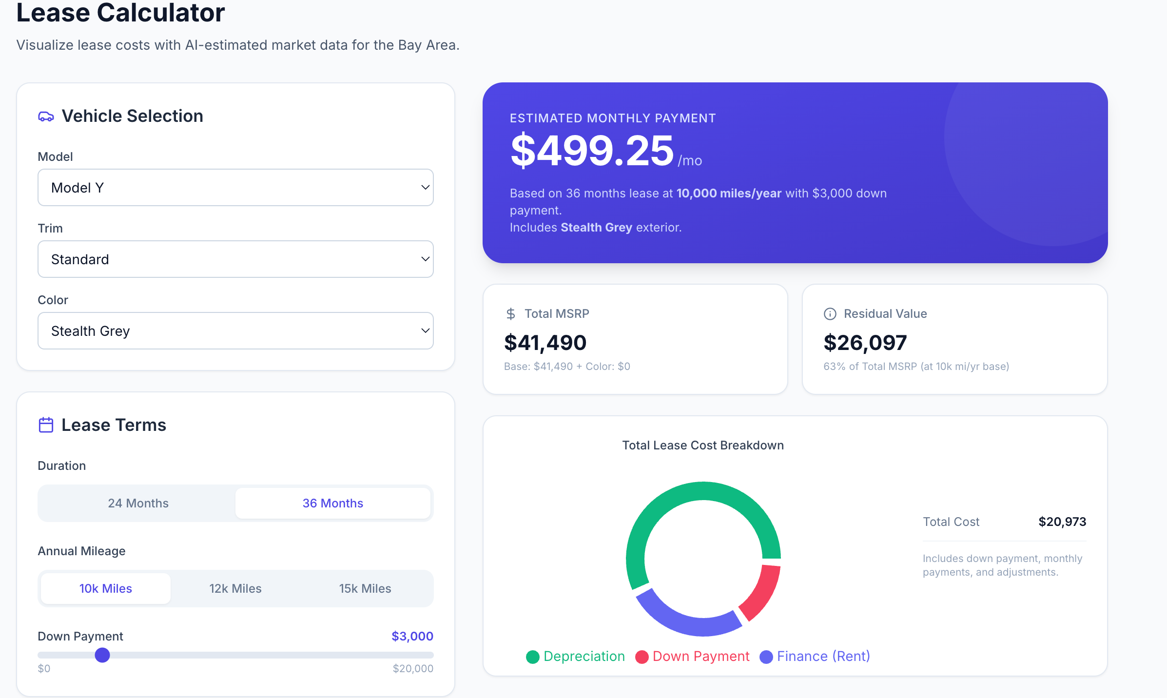 “Why do all these car lease calculators suck?” I went on my usual rant last month. My wife and I had been shopping car lease deals. Our need was simple enough: We had a few cars in mind. We had a monthly payment and downpayment in mind. We wanted to find out which combination of (car, trim, yearly mileage) would be in our (monthly, downpayment) range, so we could negotiate further and finally close. However, none of the comparison websites we checked out had the right UI and/or the right data to meet this need. So I decided to fetch the data from a few sources and then one-shot a locally hosted comparison tool.